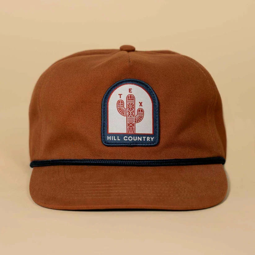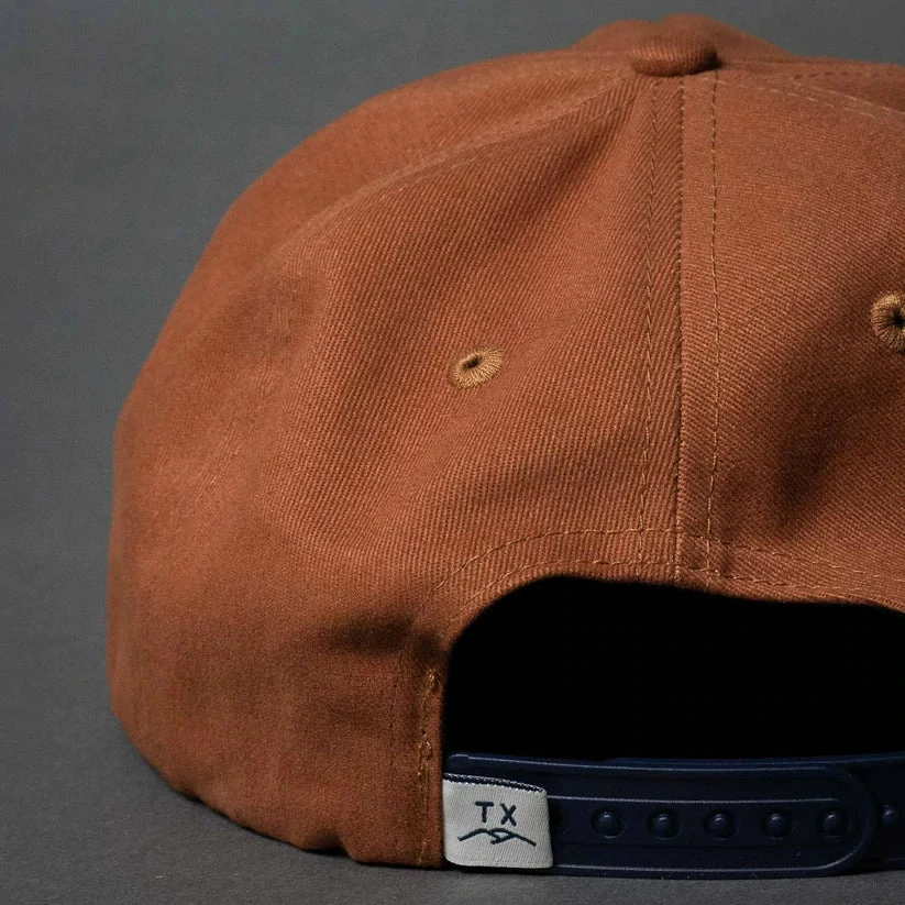 Custom designed 5-panel rope hat with an unstructured front and adjustable snapback. Fits medium to larger heads best. Bill is slightly curved and can be bent further or flattened out to your liking.
