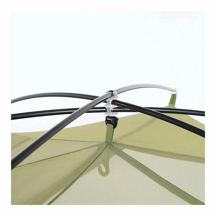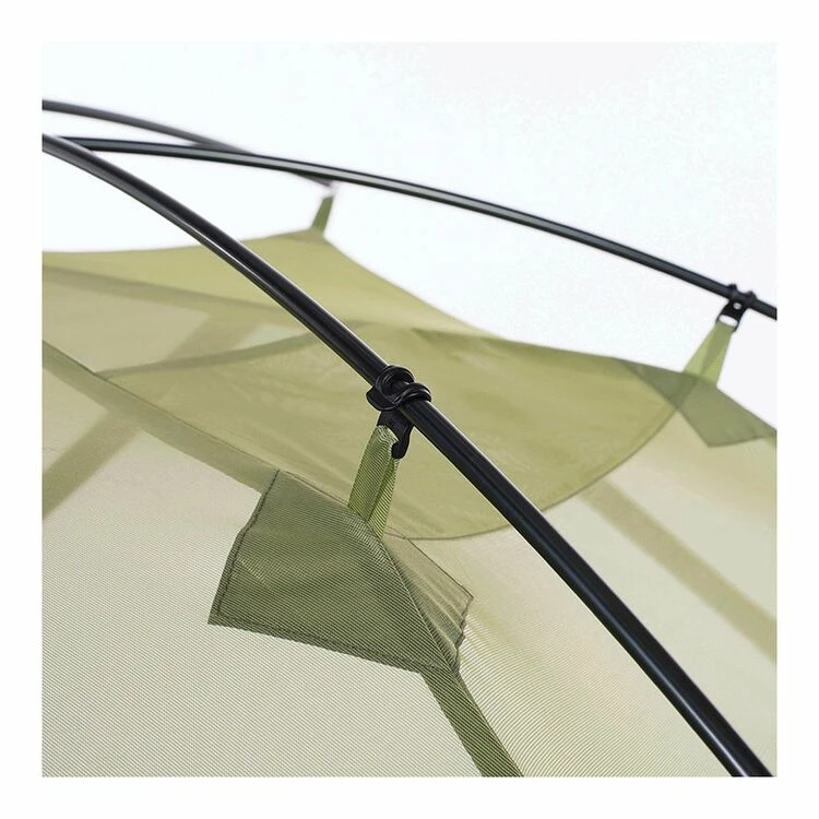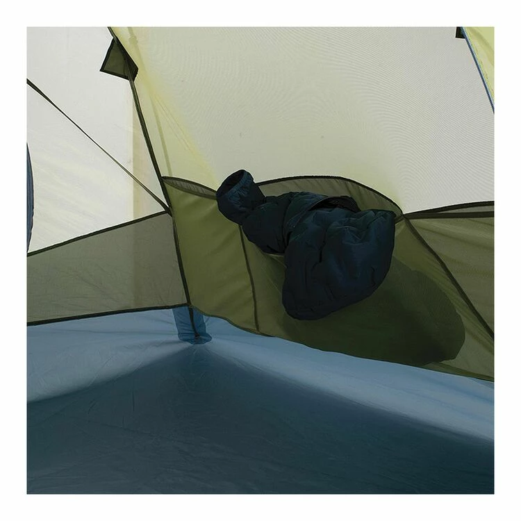 - Storage: 7 mesh pockets (4 in roof, 2 at head wall, 1 in foot wall), 1 hook at apex, 4 gear loops in roof